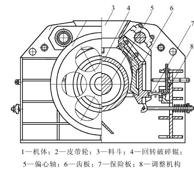 双腔回转式破碎机的结构组成:
