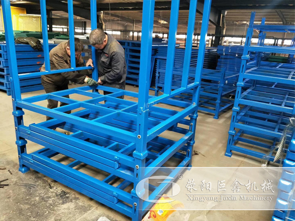 巨鑫机械生产的堆垛式货架采用优质型钢焊接而成,可拆卸式设计,组装拆卸灵活方便,载重可根据储货需求定制,可堆垛式仓储货架零部件主要包括一个底座、四根立柱、还有 8个护栏边架,组装时可先装上四根立柱,然后开始把需要储存的货物整齐的摆放在可堆垛式货架的底座上,当装货量达到堆垛式货架规定的载重标准时,再装上护栏边架。最后再上锁,在堆垛货架分类牌上写上货物的类别名称编号,便于仓管人员清点查找。
